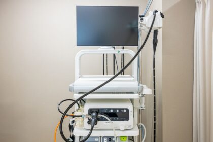血圧、心拍数、呼吸数、酸素濃度などをリアルタイムで測定・表示するモニターで、検査や処置中の安全管理を支える重要な装置です。